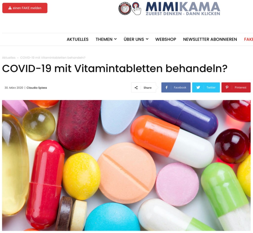 Leider ist diese Theorie völlig falsch.“ Link: https://www.mimikama.at/aktuelles/covid-19-mit-vitamintabletten-behandeln/