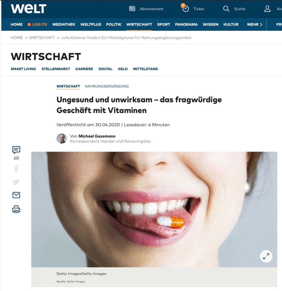 Die Springerpresse sicherte sich einen der vorderen Plätze im Vitamin-D-Bashing: https://www.welt.de/wirtschaft/article207507679/Julia-Kloeckner-fordert-EU-Hoechstgrenze-fuer-Nahrungsergaenzungsmittel.html