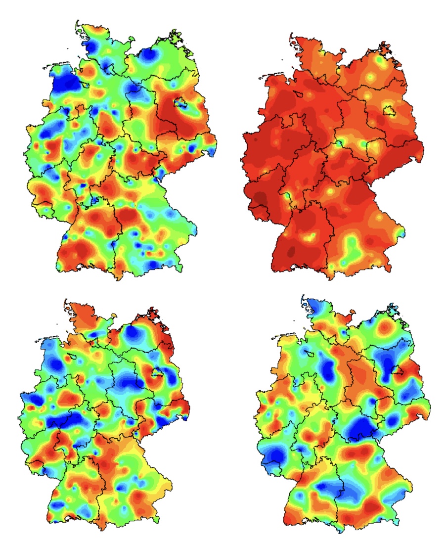 Wie sieht dagegen eine echte Virussaison aus? Nachfolgend Bilder aus den vergangenen vier Jahren zum jeweiligen Höchststand des Aktivitätsgrades, beginnend mit oben links nach unten rechts 2017-2020: