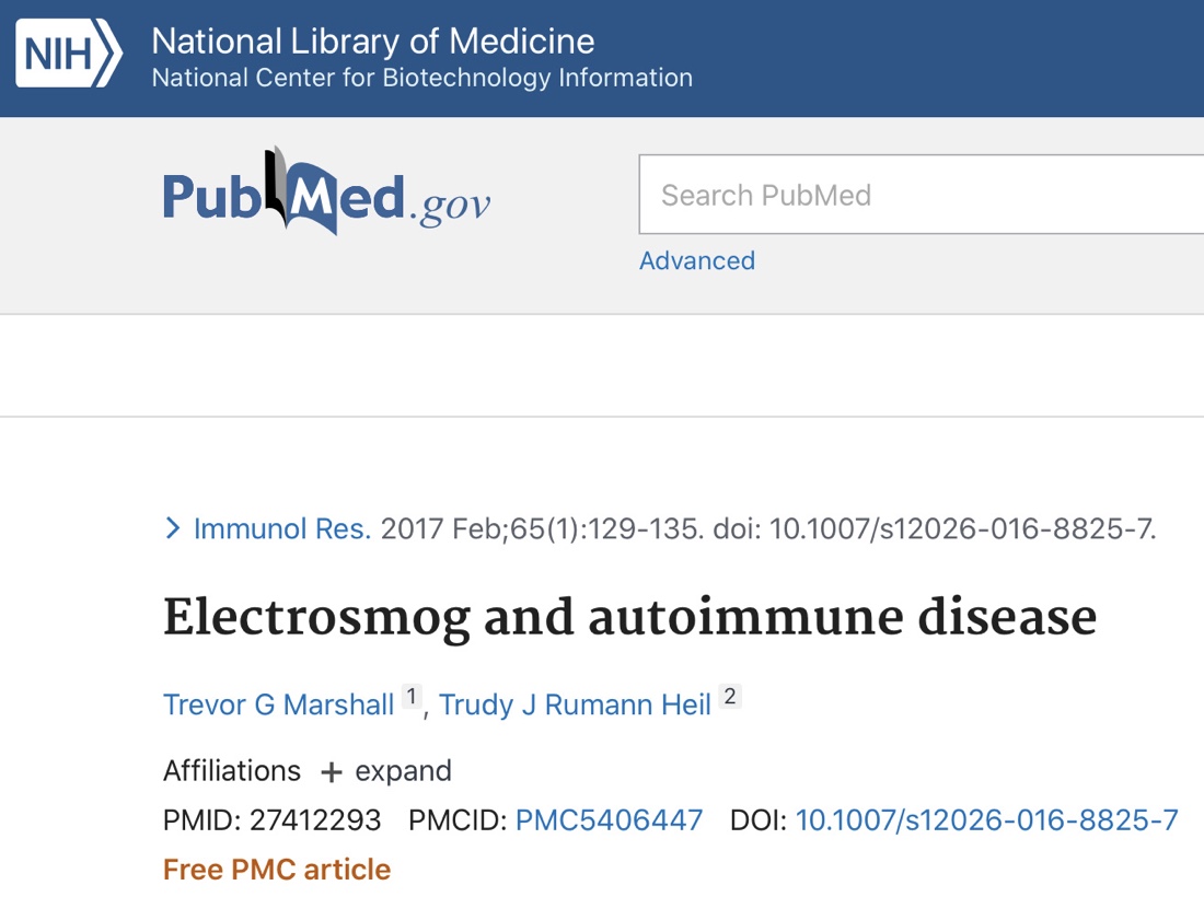 Elektromagnetische Felder schwächen das Immunsystem durch Behinderung der Vitamin D-Rezeptoren. Dies zeigt eine Studie an Mäusen (Electrosmog and autoimmune disease) von T.G. Marshall von der amerikanischen «Autoimmunity Research Foundation». Besonders stark ist der Effekt bei höheren Frequenzen, wie sie bei 5G und WLAN verwendet werden.