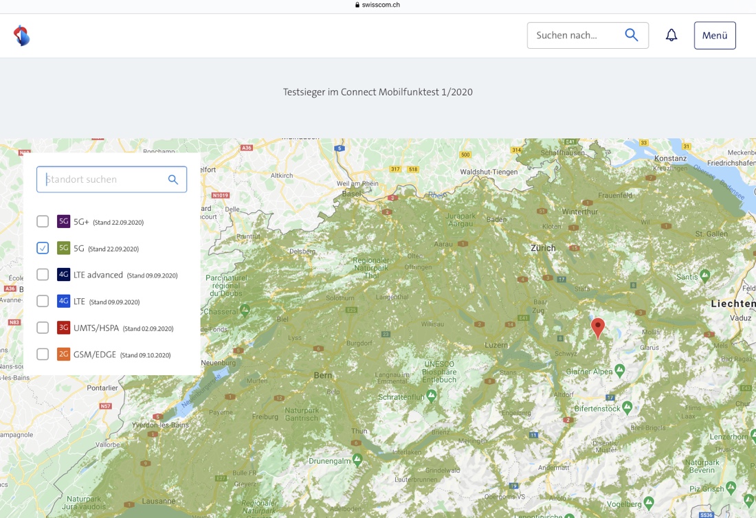 - Die Schweiz, ein Land mit relativ hoher Infektionsrate, ist gemäss Swisscom zu 90 Prozent mit 5G abgedeckt. (Quelle: https://www.swisscom.ch/de/about/unternehmen/portraet/netz/5g.html)