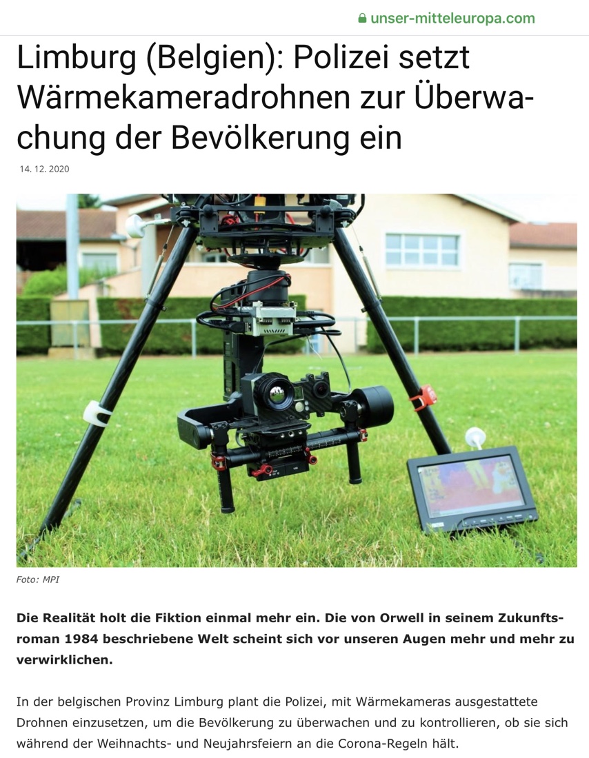 Und in Belgien bekommen jetzt erst einmal die weihnachtlich Feiernden Besuch mittels einer Wärmebild-Polizei-Drohne: