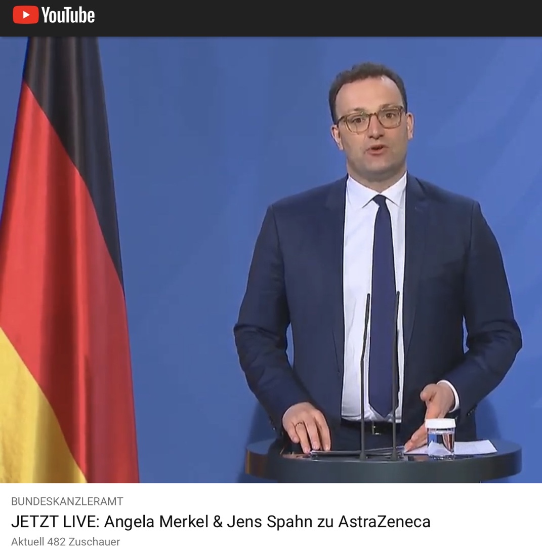 Da stellt sich die kackbraun-gekleidete Kanzlerin und der schlumpfblaue Krankheitsminister vor YouTube-Kameras und erzählen den Schafen was von Pferden. (Link)