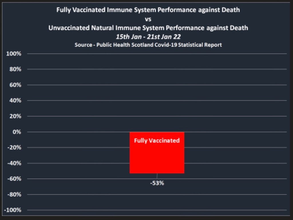 Dies bedeutet, dass das Immunsystem der vollständig geimpften Bevölkerung dem natürlichen Immunsystem der ungeimpften Bevölkerung tatsächlich unterlegen ist.
