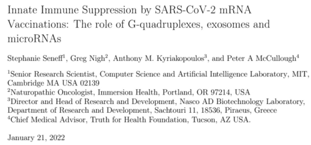 Die Studie mit dem Titel „ Innate Immune Suppression by SARS-CoV-2 mRNA Vaccinations: The role of G-quadruplexes, exosomes and microRNAs “ wurde am 21 -19 Impfstoffe haben vielfältige Folgen für die menschliche Gesundheit.