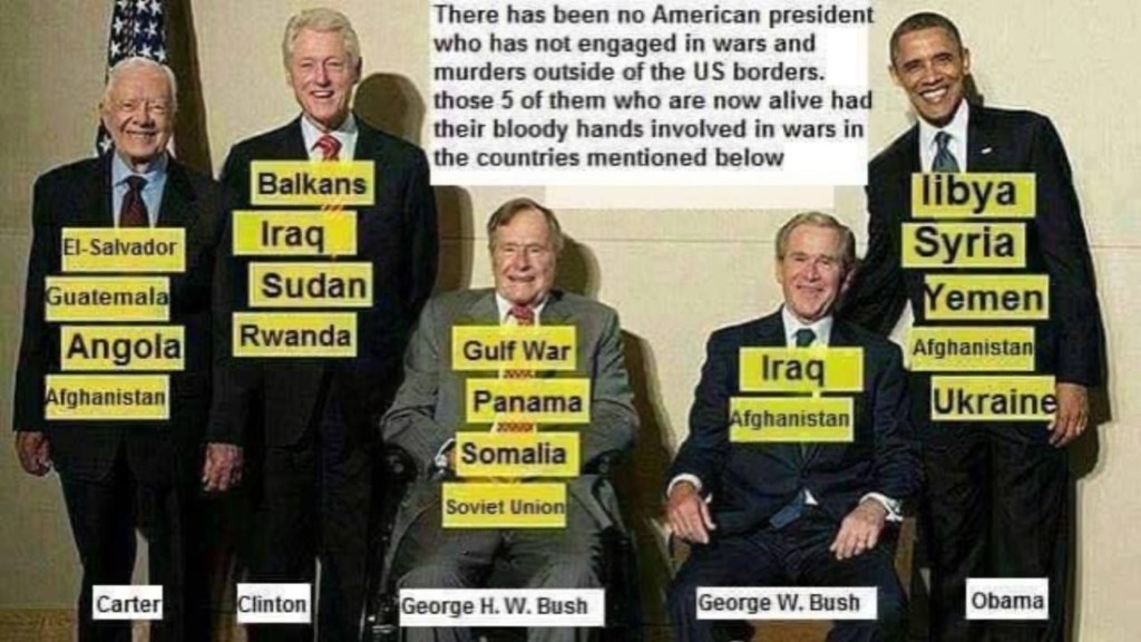 Als Carter, Clinton, die beiden Bushs und Obama ihre 19 Kriege führten, kam niemand auf die Idee sich einzuschränken „für die Freiheit oder den Frieden“.