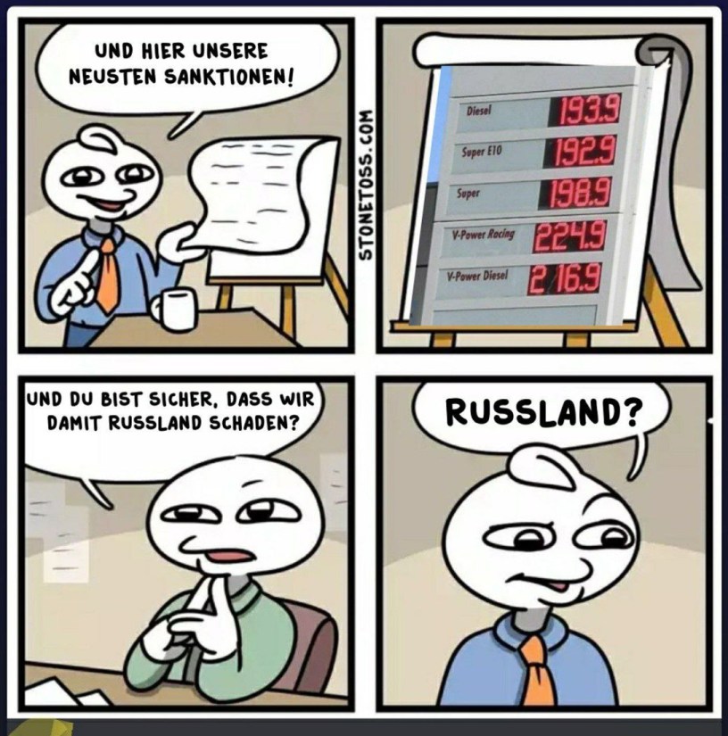 Der Westen schließt mit seinen weichen FIAT-Währungen (nicht goldgedeckt) Russland von ihrem Finanzsystem aus. Das bedeutet auch, dass z.B. Deutschland nicht einmal die verbleibenden Gaslieferungen bezahlen kann, die es immer noch (großzügig) erhält.