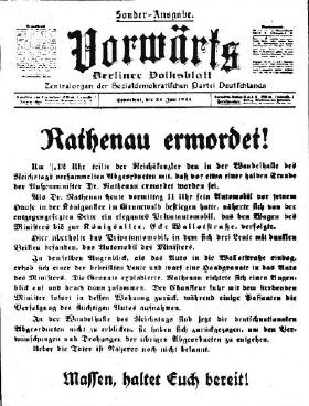 Nur wenig später wurde Walther Rathenau, der deutscherseits den Vertrag von Rapallo ausgehandelt hatte, erschossen (angeblich von deutschen Faschisten).
