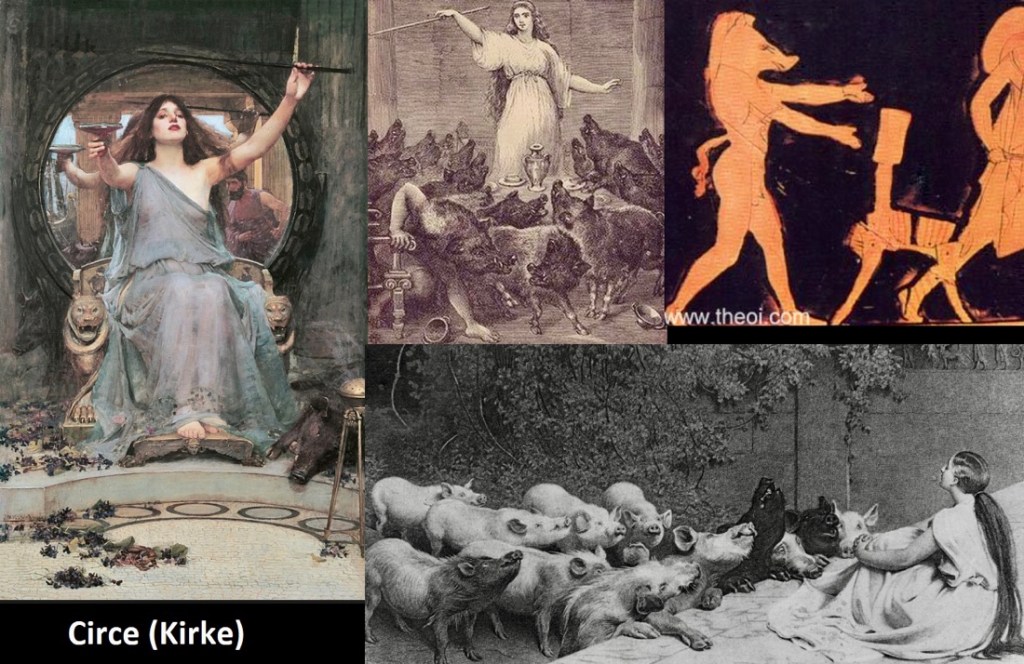 Es gibt aus der griechischen Mythologie die Geschichte von der mächtigen Hexe Circe (oder Kirke), die unliebsame Menschen mit ihrem Zauberstab in Schweine verwandelt.