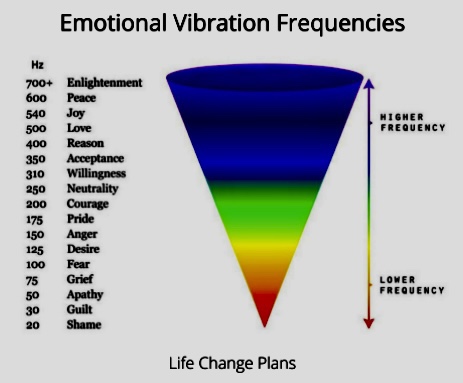Die folgende Grafik zeigt die Schwingungsfrequenz verschiedener Emotionen in Hertz. Wer über 200Hz oder deutlich höher schwingt, ist für diese Wesen unattraktiv, denn das halten sie nicht aus. Ein konstanter Zustand davon ist für viele Menschen eher unrealistisch, trotzdem sollte man konstant danach streben und ein Gespür dafür entwickeln.